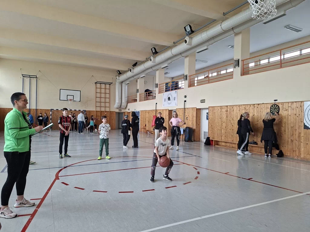 Natjecanje  smo proveli u 4 discipline: pikado, vođenje nogometne lopte, gađanje rukometnom loptom i ubacivanje lopte u koš.